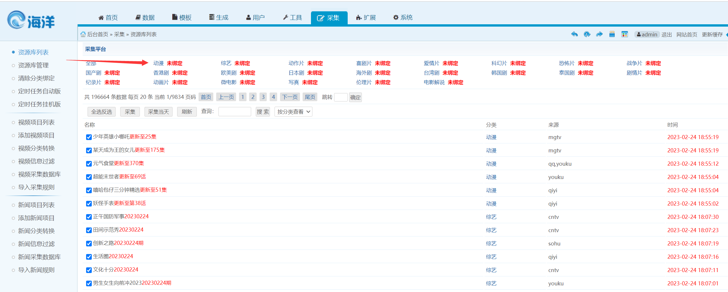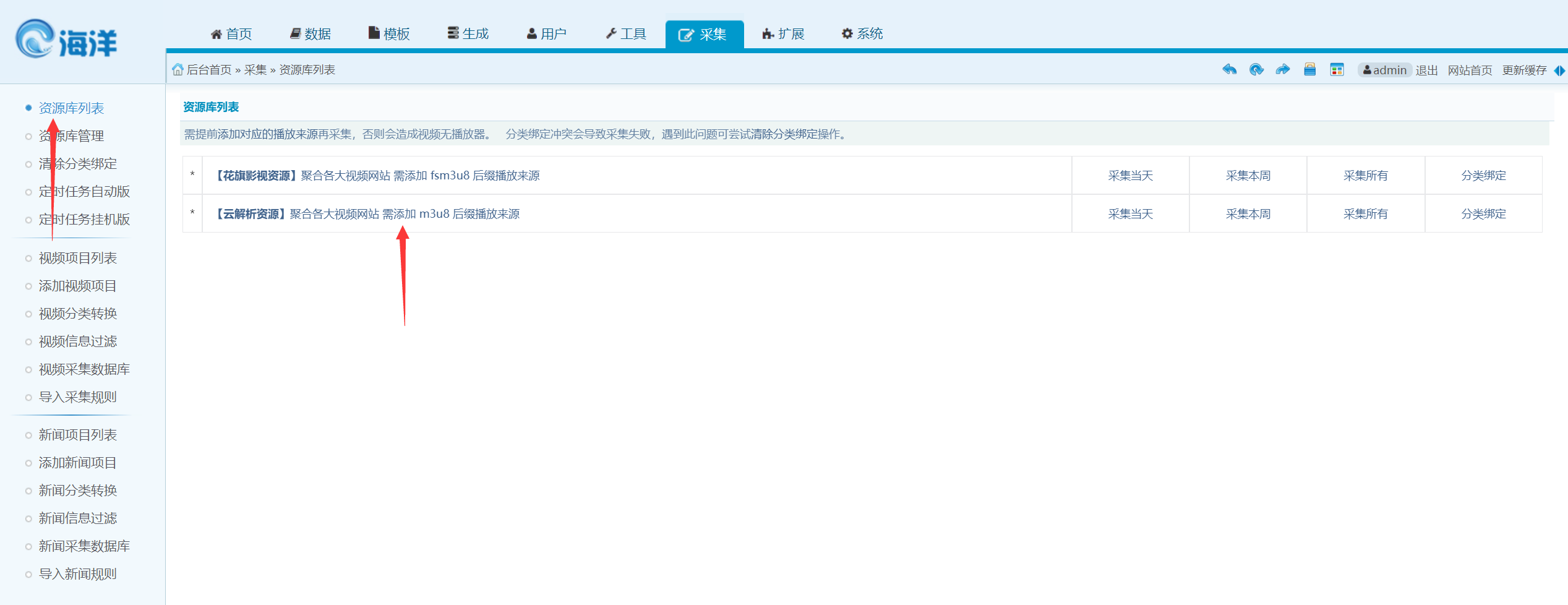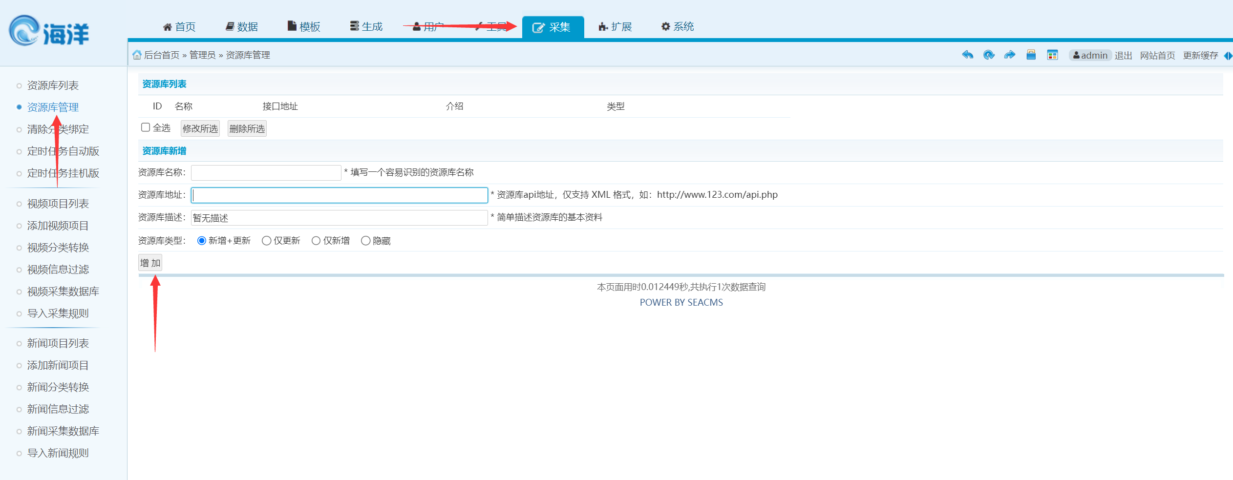 1.添加采集地址 老版本海洋cms接口如下 新版本使用帮助中心通用地址